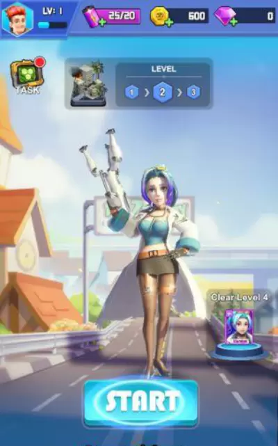 1、进入游戏时,角色的枪口会上下摆动,我们需要点击屏幕控制角色开枪,子弹会随着枪口的角度朝不同方向发射子弹;