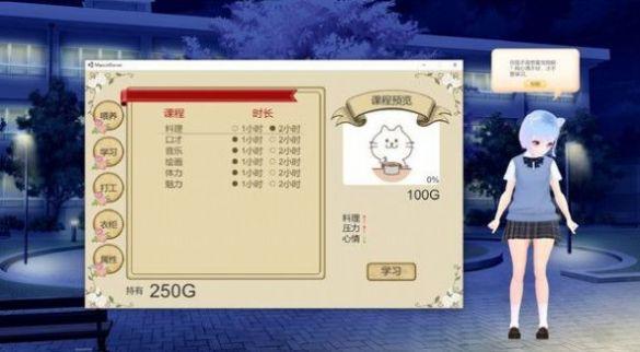 3、养成一个二次元可爱妹子,每天帮助她应对生活之中的一切琐事,高互动性的对话玩法就像拥有一个可爱的女友。