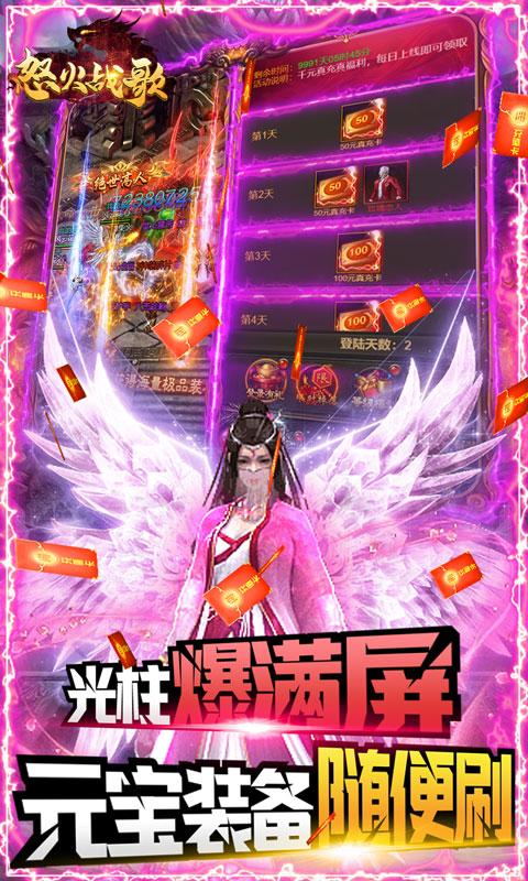 3、充值比例1:5000,首冲最高10倍返利,送绝版传世套装,次充双倍返利