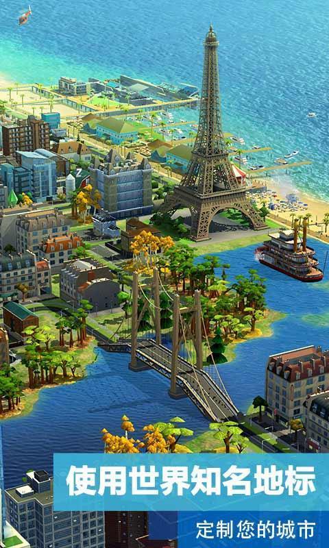国际级城市地标:玩家在游戏中可以修建许多国际级城市地标,例如巴黎埃菲尔铁塔、帝国大厦、财富广场、东方耀眼明珠这些,只要你的城市经济发展充足好,你要如何建就如何建。