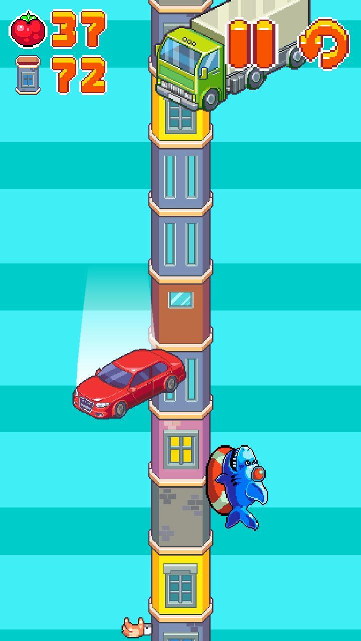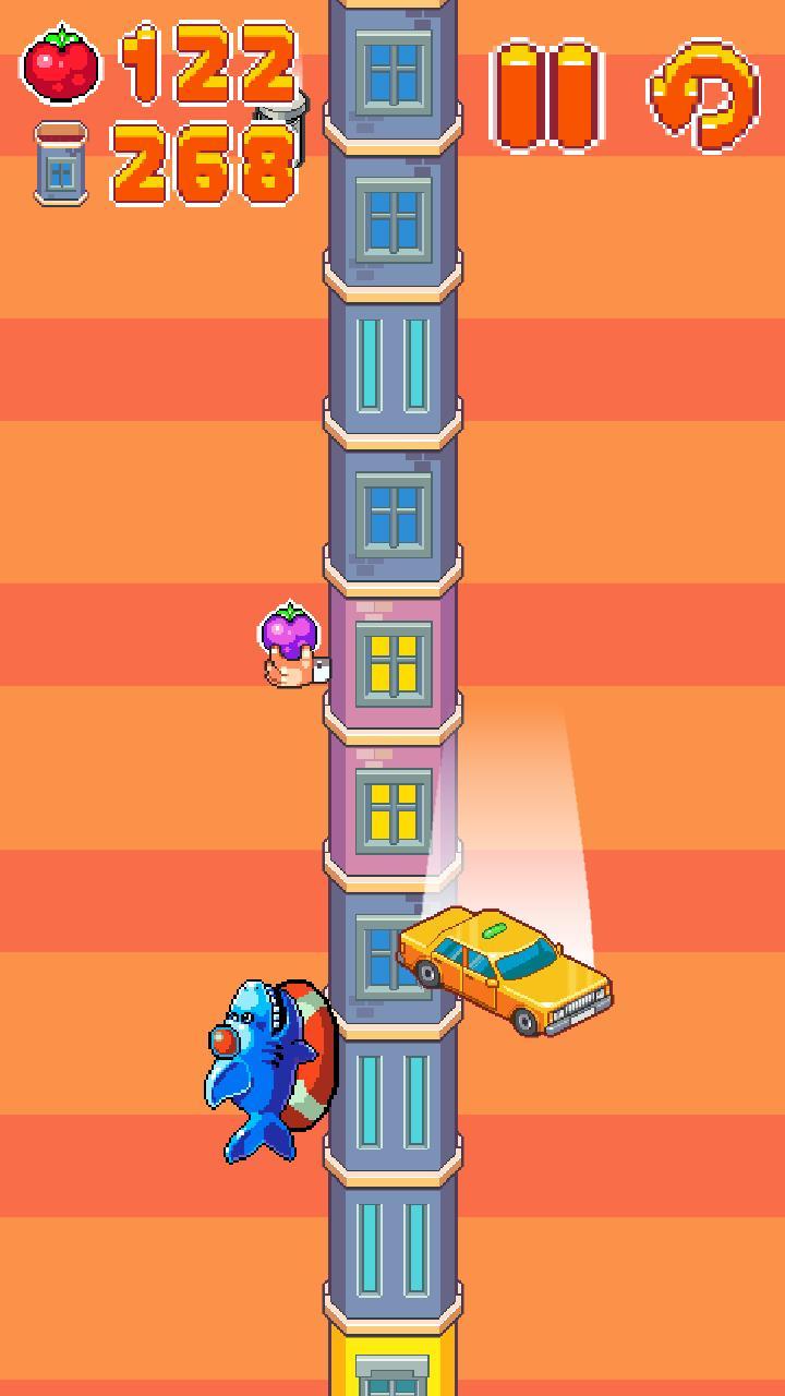 1、玩家要操作角色在一条无尽高的高楼上爬行并躲避沿楼下落的杂物,游戏在玩法上并无创意,但是看上去非常有趣。