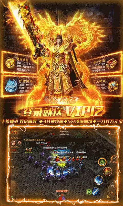 登陆直升VIP3 职业专属黄金武器 金券*50000 vip经验*20000