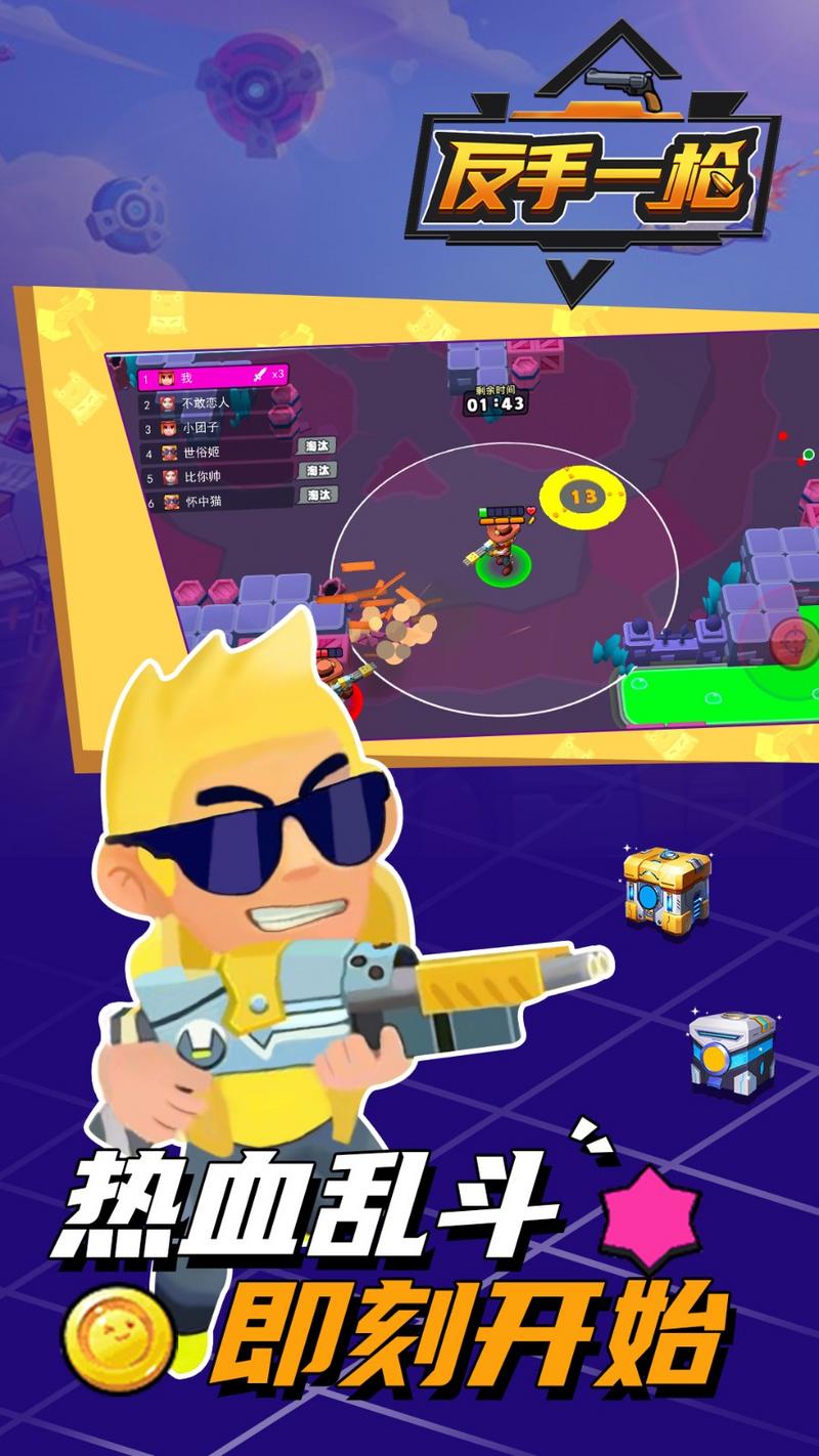我反手就给你来一枪为玩家带来了最刺激的射击大乱斗玩法,玩家可以在这里自由的选择不同的位置进行作战,合理的利用环境中的各种障碍作为自己的掩体,帮助自己成功的淘汰所有的竞争对手并取得第一,里面的枪械武器是非常丰富的选择上也非常自由,玩家可以在这里更好的沉浸其中畅享不同的精彩,卡通的绘画风格看上去也蛮不错的很推荐。
