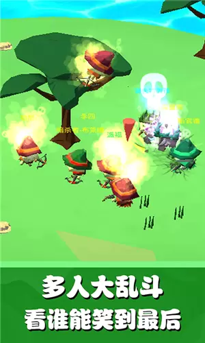1,游戏中的规则采用了传统大乱斗玩法,玩家一群人进行混战,通过自己的操作击败敌人。