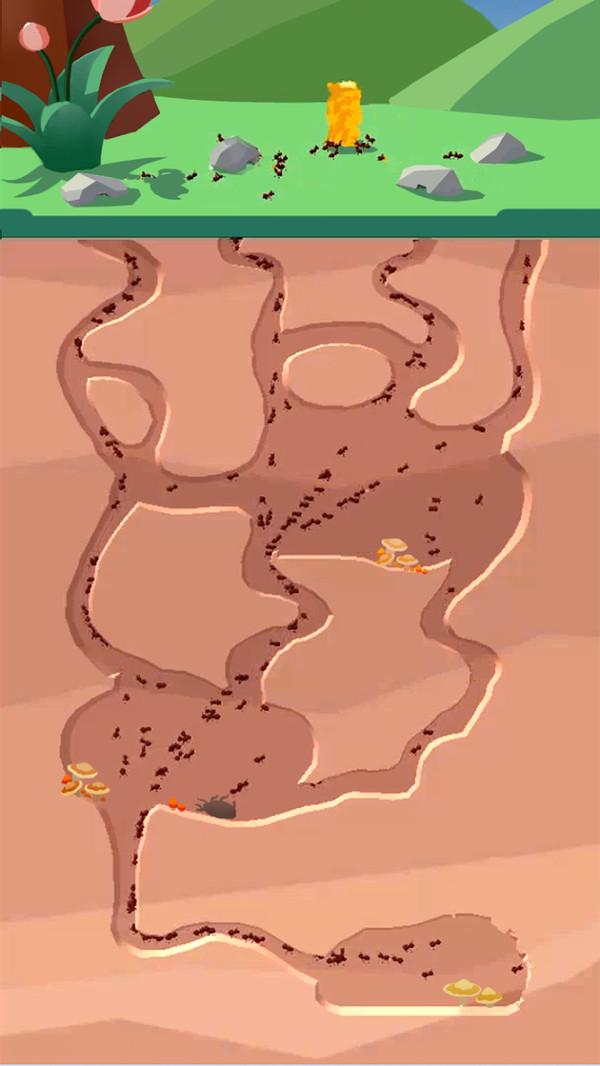 蚂蚁地下王国游戏讲述了一群蚂蚁族群在一起活动的故事,这群蚂蚁当中就有一位大佬,能够带领自己的蚁群在广阔的大地中生活,储备足够的食物,给自己建造一条生命线,还有更加适宜居住的环境,你可以参与蚁群生活的建造。