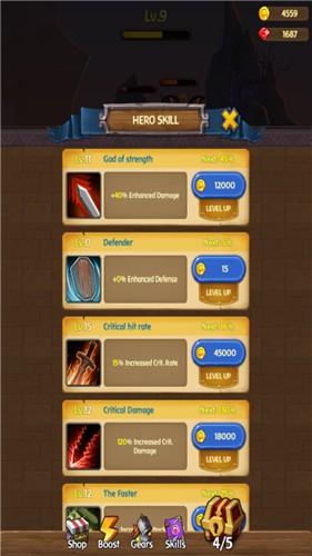 2,点击一个对应的技能按键,可以让游戏中的主人公对地牢中出现的敌人进行打击。