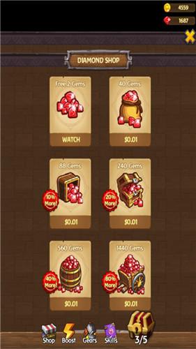 游戏的玩法采用了合并放置的模式,让玩家能够更加轻松的体验游戏的乐趣。通过不断的合并产生产生出全新的强力角色,放置到地牢去练级刷材料和装备。增强角色的实力才能够更深入的去探索地牢中的秘密。