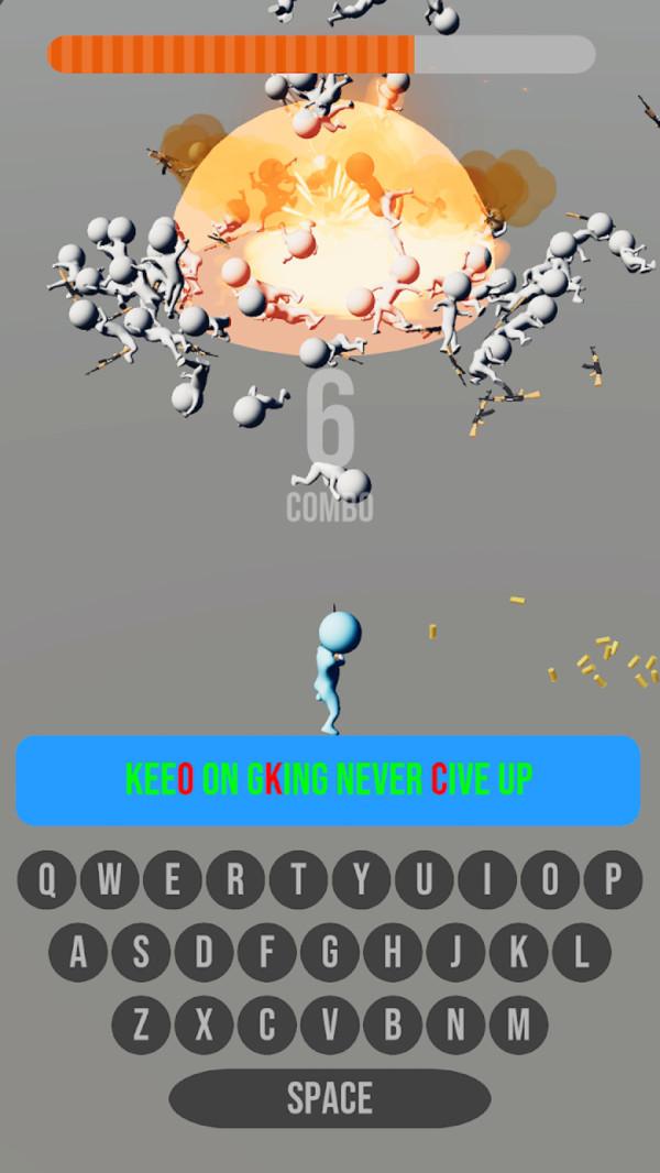 2、立即输入文字,比较简单的实际操作,一连串英文字母键入不可以打错,一把枪也可以赢。