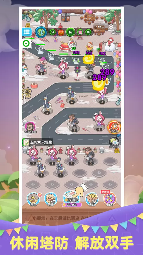 1、Q版有趣的游戏画风,营造搞笑十足的游戏氛围,以策略塔防为主。