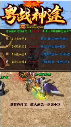 粤战神途手游是一款经典传奇rpg手游,粤战神途游戏拥有经典怀旧游戏画风,游戏高度还原了经典传奇游戏,粤战神途手游中精美的画面,恢弘的场景,经典的职业选择,带你重温曾经的激情岁月!