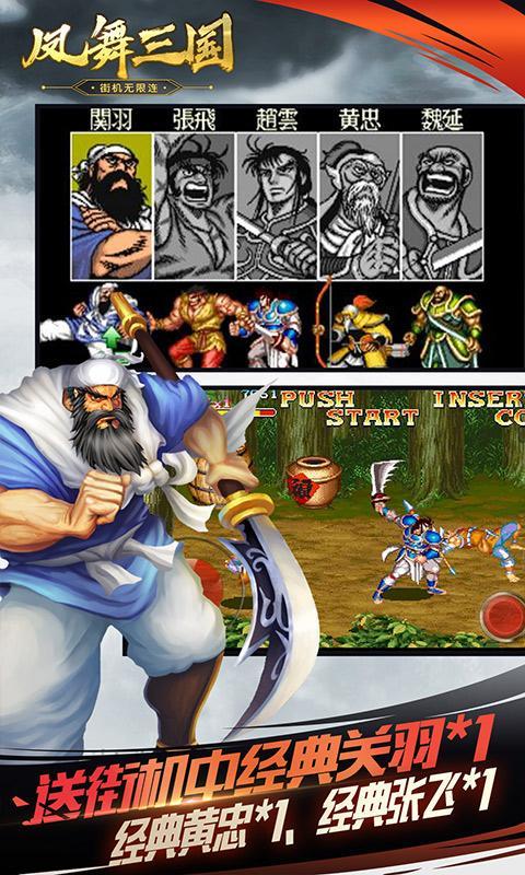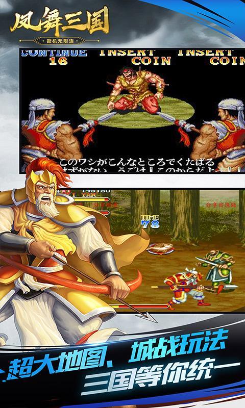 《凤舞三国-街机无限连》以经典街机为题材,把卡牌战斗做成即时战略,是一款经典还原街机风格的横版过关手游,会有一个非常的不错的一种体验吧,这里的装备还是人物都是非常的多的,你都不好进行一个选择的吧,快来加入进来吧,感受三国的浩瀚。这款游戏以角色扮演为主导,融入了ACT与SLG的特点。以经典街机的标准构建,增加了城池系统,衍生出多种玩法,玩家在游戏中可自由选择格斗,策略,竞技的玩法。