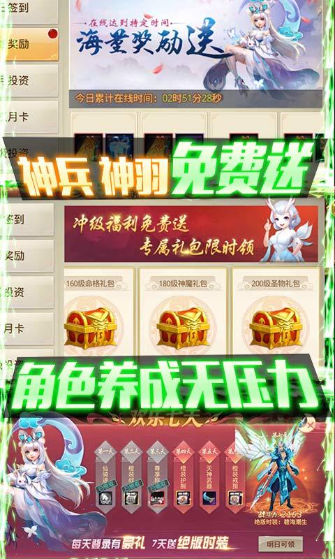 3.超值礼包神兵、神羽、仙骑免费任选其一!