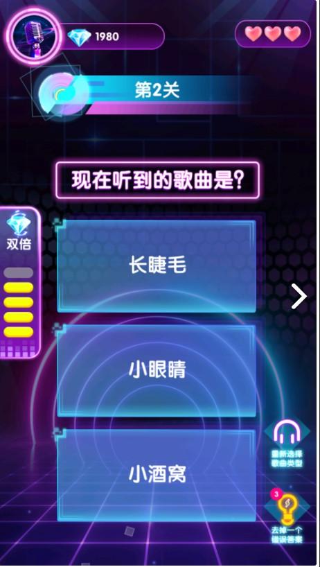 2、只需要听关卡播放的曲目,从给出的选项中选择正确的歌名就能闯关成功。