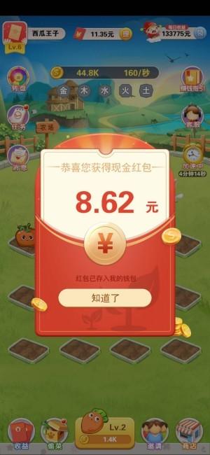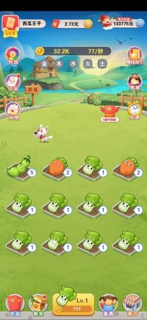 轻松简单的赚红包方式,每个玩家都在同一起跑线上开始,从1级菜开始培养到38级,38级可以合成高级的分红菜,每天自动获得上百的收益,比上班还赚!