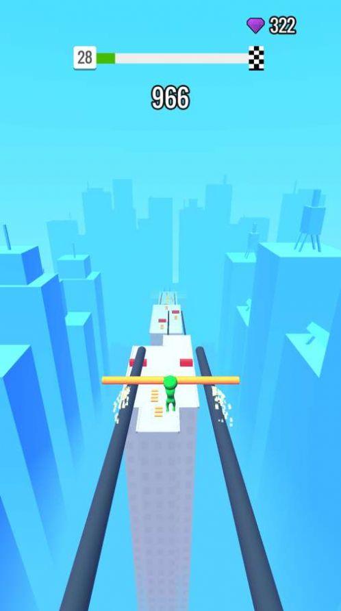 2、玩家需要不断的移动你的长杆,往前冲,目标通过终点;