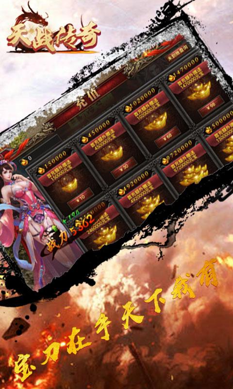 天战传奇是一款以多人传奇类争霸ARPG游戏。多样化的技能,超高水准的游戏品质和画面展现,将会给玩家带来极强的画面代入感受!强悍的战斗体验以及魔性的对战玩法,带来极强的游戏感受!