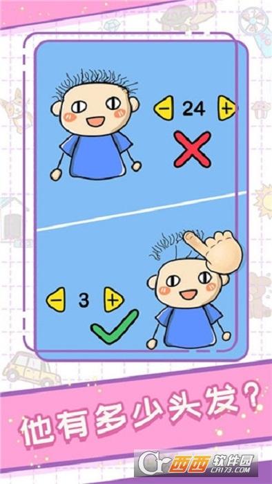 难到秃顶手游是一款需要在每道关卡中成功解谜的休闲益智类闯关游戏,游戏中设置了许多的烧脑难题以供玩家进行解谜闯关,游戏中多种类型的难题让玩家猝不及防,大量的少男问题其实解决问题的方式十分的简单只需要仔细观察,玩家就能快速的找到解决问题的方法,感兴趣的朋友可以试试这款好玩的游戏,进行脑力测试,更多的脑力游戏以供玩家挑战!