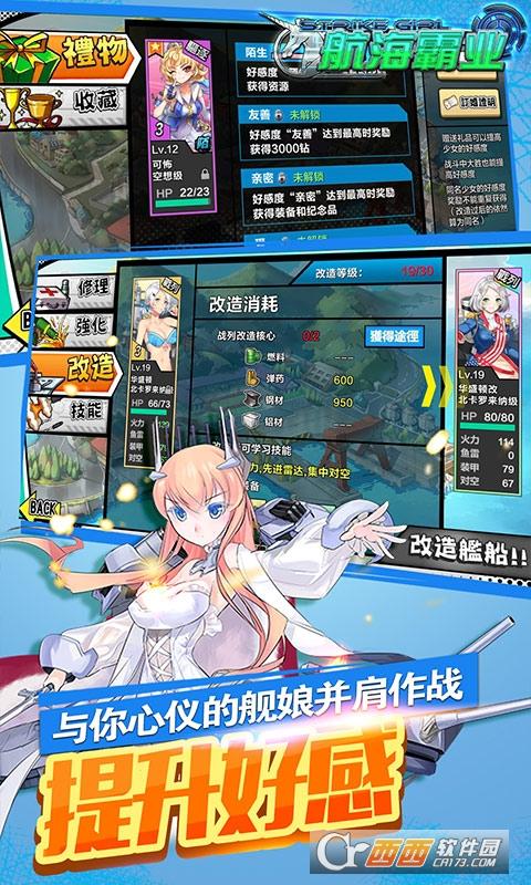 《航海霸业-送黑丝舰娘》是国内纯原创舰娘题材手游,全二次元团队打造的一款颠覆型卡牌手游。以战舰为基础拟人化成各种类型的可爱萌娘,由知名画师精心绘制人物,还有国内外声优倾情献声,惊喜不断诚意十足。中山号萌娘,伊丽莎白号御姐等等海量舰装妹子全在这里,等待即将成为提督的你!全新世界观,让提督们体验不一样的舰娘故事,2021年全新起航。