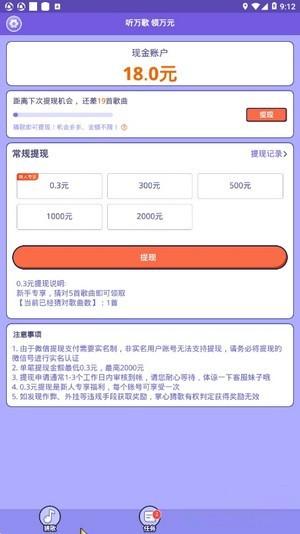 掌心猜歌红包版是一款以猜歌为主题的趣味闯关游戏,这里有着丰富的歌曲,第一时间猜对歌曲的名称就能过关了,对于喜欢听歌的人来说难度并不高,而且不断的答题闯关就有机会获得丰厚无比的红包奖励呢!