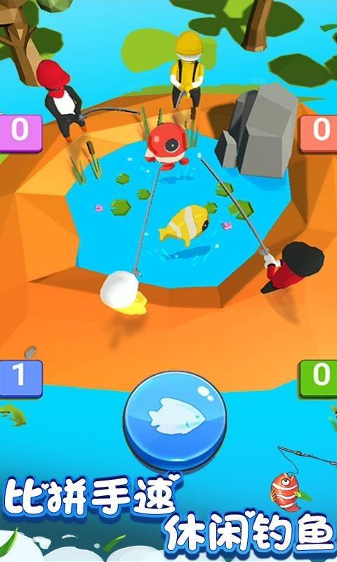 -全民钓鱼:眼疾手快,智取对手。当鱼儿从湖中跃起的时候按下按钮钓起鱼竿,注意每条鱼儿的分数是不一样的,有些鱼儿甚至是负分的,考验你反应力的时候到了。