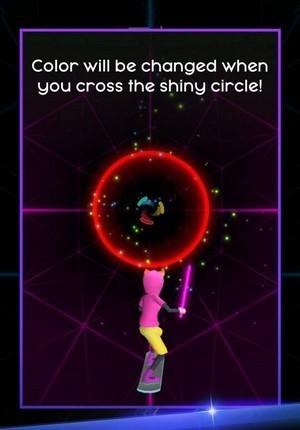 1、根据音乐的节奏和游戏中颜色的变化来控制角色的方向。