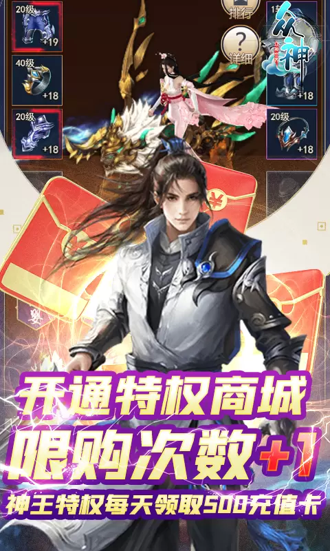 ★开通特权商城限购次数+1、神王特权每天领取500充值卡、王者级当托福利!