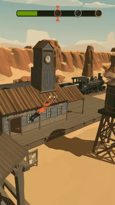 牛仔翻转是一款动作闯关游戏,游戏中会有好多个场景而且对应的场景内会有不同大小的物体是要让小人通过蹦床的力度跳到对应的物体上,每次的蹦床都是一样的只要控制牛仔弹跳的力度即可必须要确确保牛仔能跳到物体上。