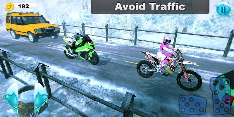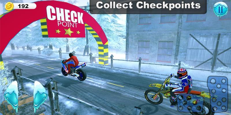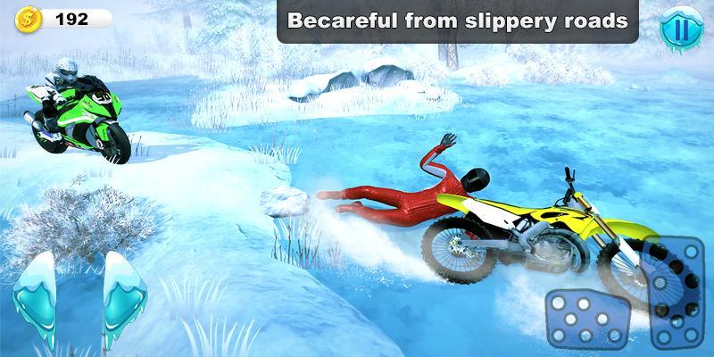 1、驾驶着炫酷无比的摩托车,在冰天雪地中进行竞技挑战;