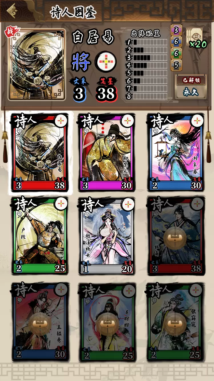 这是一个由诗人用诗词所组成的卡牌进行比斗的休闲即时战略游戏。