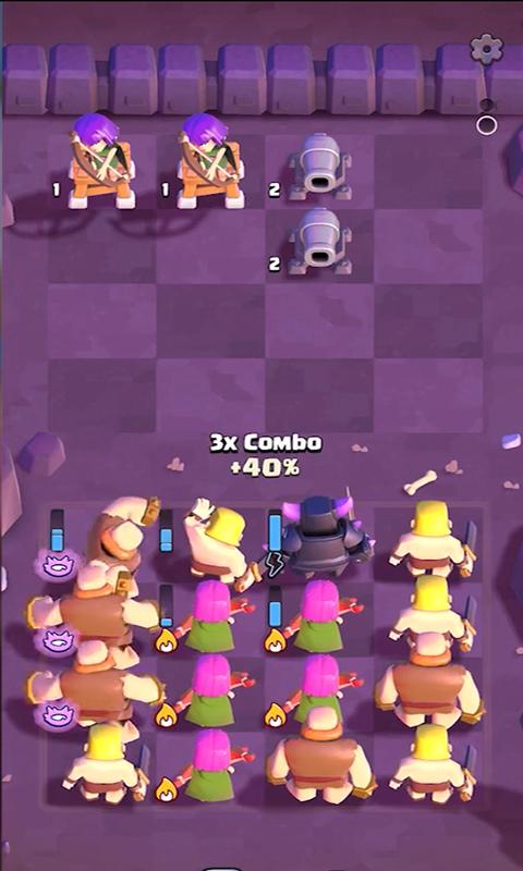 游戏采用排布消除的方式进行战斗,在有限的兵种消除光之前解决敌人是本游戏的核心玩法;