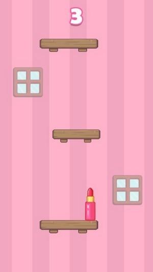 1.点击屏幕控制口红向上跳跃,注意节奏;