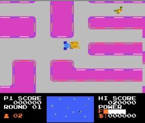 敌人的红色赛车会在迷宫中追逐玩家的蓝色赛车,与任何一辆红色赛车相撞都会损失一条生命。红色赛车的数量从第一关的一辆,一直增加到最多五辆。玩家可使用烟雾弹来对付红色赛车。如果一辆红色赛车撞到烟雾,它将立即失去控制打滑,而且暂时不会杀死撞上的蓝色赛车。使用烟雾弹会消耗少量燃油。
