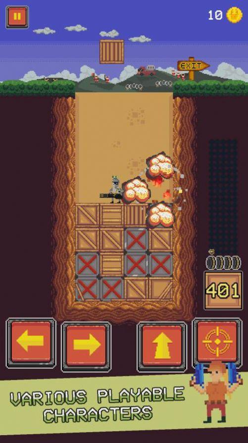 1、在战场上,您陷入了敌人挖掘的陷阱,导弹和箱子从天而降,这些将帮助你逃出去。