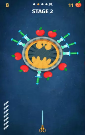 3、通过射击每个级别上的所有刀具来完成级别,如果您击中了其他刀子或长钉,将重新启动水平仪。