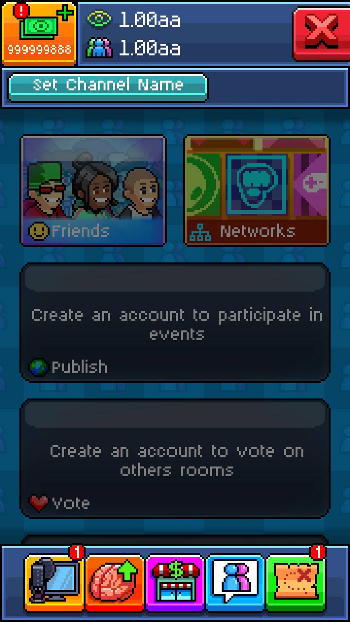 PewDiePie的主播模拟器游戏安卓版:模仿当今最流行的直播节目,招募你的主播以获取丰厚的回报,提升公司管理的专业性,并建立一个全方位的直播公司以创造无穷的财富。负责公司各岗位员工的管理,培养团队的默契和协作精神,并努力在每一项业务上创造最高的交易价值。