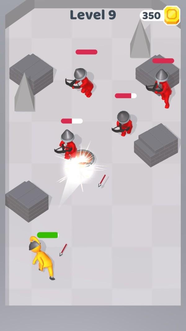 在这个战场上会有很多的小人需要你去击败,只有击败这些小人你才能成功闯关,你的小人是黄颜色的而敌人都是红色的,只有成功的消灭掉这些红颜色的小人才能成功的完成挑战。