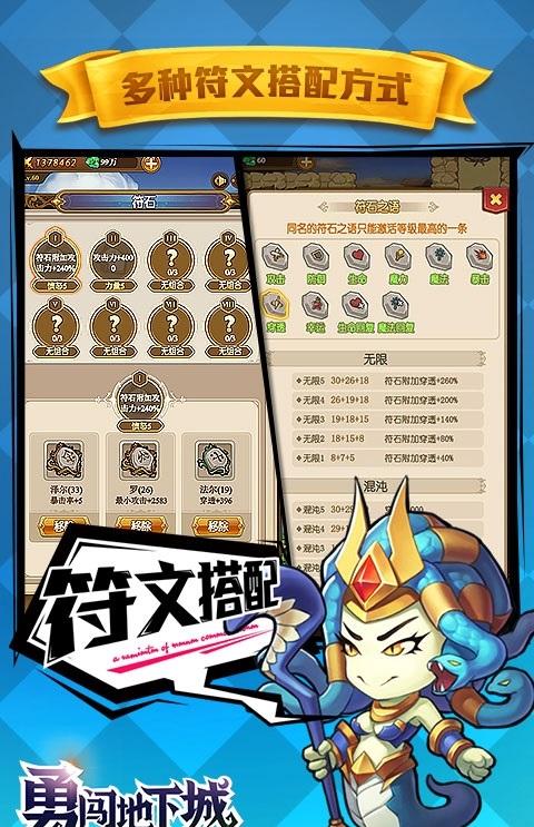 勇闯地下城是一款横版2D像素题材的无尽探索类地牢闯关动作冒险小游戏,游戏集策略、养成、角色扮演、冒险、动作为一身,游戏非常有趣味性和挑战性,非常多的游戏道具和装备等你来体验,游戏超过400层地下城,自由搭配技能,多种符文搭配使用,感兴趣的玩家,直接点击预约下载玩玩吧~!