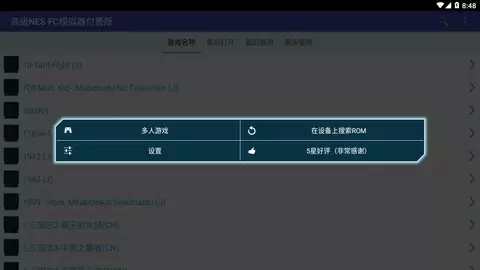 2.游戏中内置了在设备上收缩ROM功能,可以直接一键导入玩家自己下载的不同的FC游戏,完美适配各种游戏类型;