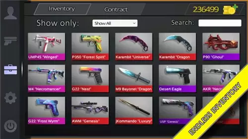 3、仓库中,玩家可以查看自己已收集的皮肤,还有带有杀敌计数器的皮肤版本,和CSGO很像哦。