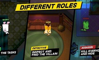 在这款游戏当中你可以轻松的感受到最经常的侦探冒险玩法,画风十分的简洁卡通化,隐藏自己,找到最后的真凶,通过玩家之间的交流找到破绽,玩法十分的魔性,然后找出对手,当厂上所有的敌人都消除的时候你就获胜了,非常考验心理素质,赶快和朋友一起试试吧。