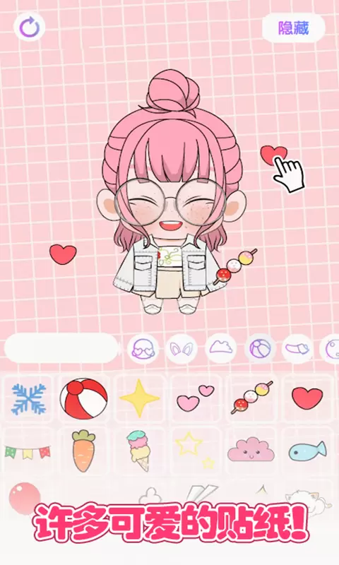 3、多种风格和有趣的贴纸,可自行选择搭配,呈现角色的个性。