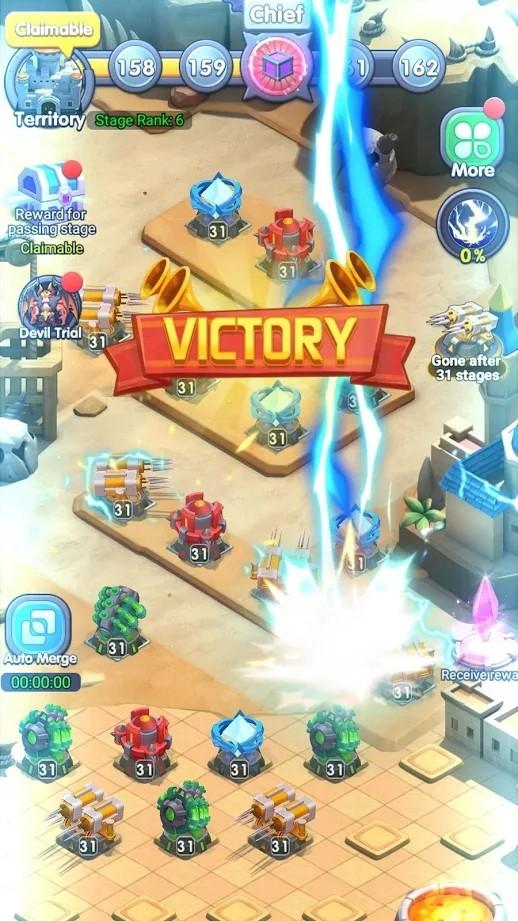 玩家在游戏中可以主要分为两个不同的方面,第一个是战斗,第二个则是发育,战斗系统就是一个类似于战旗的玩法,玩家在场景中进行移动,然后碰到怪物进行攻击,击杀他们可以获得相应的一些金币。玩家在战斗方面的主要是各种兵种的养成。
