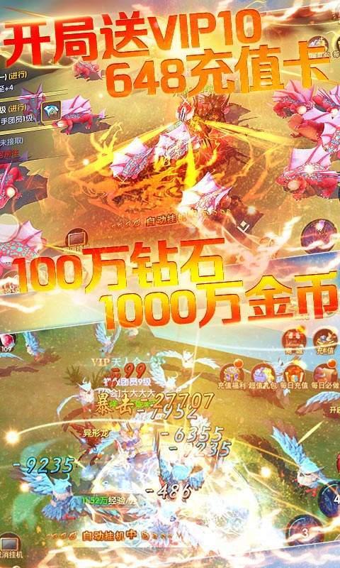 上线送V10,钻石*100万,金币*1000万,648充值卡 一路保驾护航资源拉满。