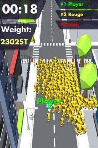 1、现在让我们一起开始哄抢食物,在城市中展开一场乱斗吧!不断的扩大你的人群,带领他们抢走更多的美食,成为这场比赛中的赢家,在规定时间内看谁能够拿到更多的积分。