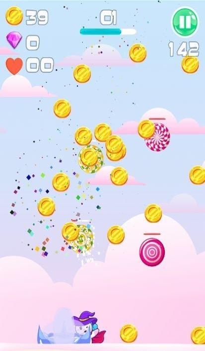 3、控制着手中可爱的独角兽去进行闯关,大量的金币等待着你去收集。