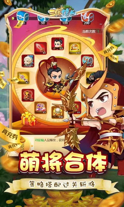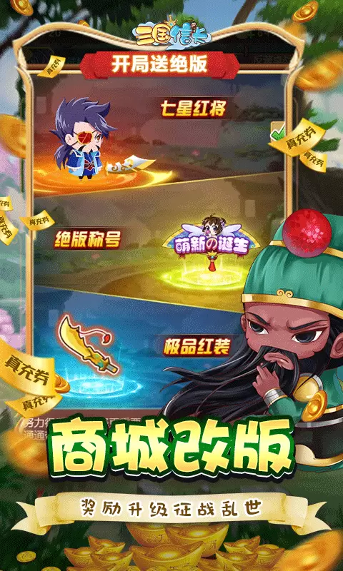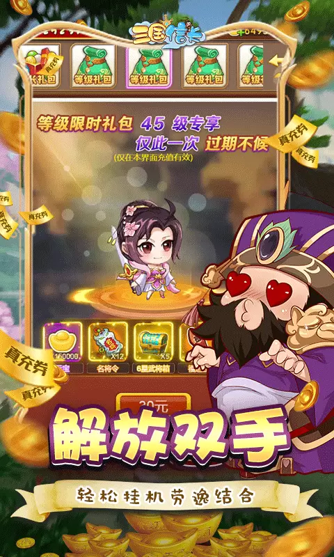 5、创角好礼来,毕业礼包直接送,关羽、诸葛亮、大乔、曹操、周瑜、吕布、貂蝉等各种毕业神将点击领取(有等级使用限制,100级可全部领取),7星武将箱、7星装备箱,充值券(不激活线下返利活动)也是各种送,领到就是赚到哦!