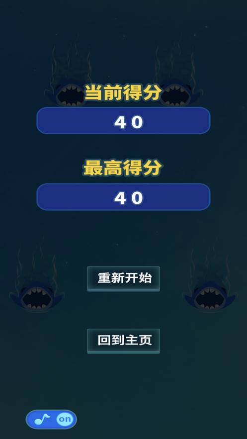 3、每10分增加一个等级,鲨鱼下落速度会随等级增加。