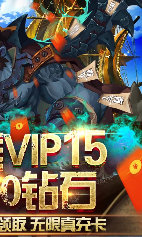 1、上线在邮件里面领取VIP积分,就可以直接升到VIP15,还送164000钻石,500w银币,多档位VIP礼包免费领,大量的进阶材料、道具,助你驰骋海陆双地!