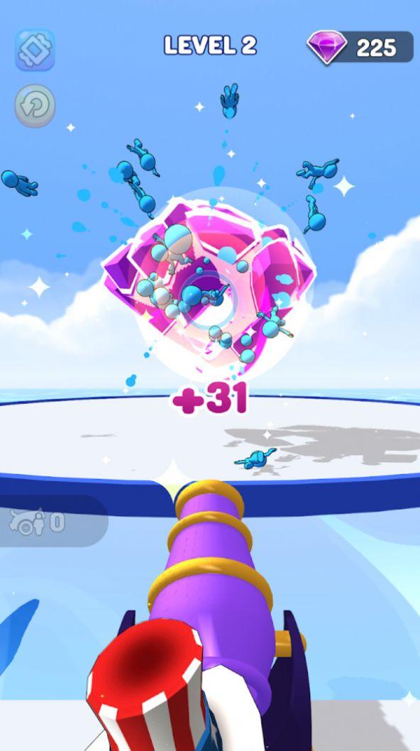 1、升级大炮发射更多的小人,全力射击摧毁一切的敌人和城堡。