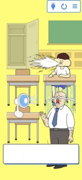 2、打开柜子获得电风扇,将电风扇放到桌子上,吹走老师的假发。